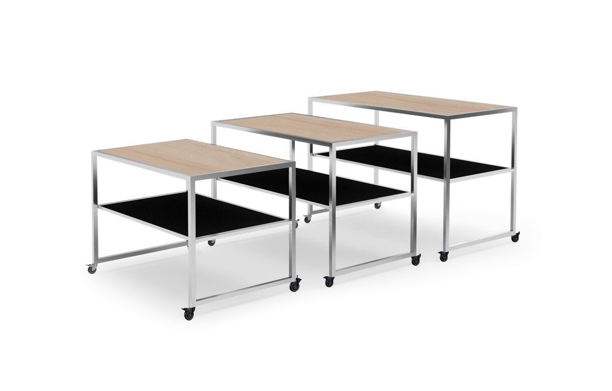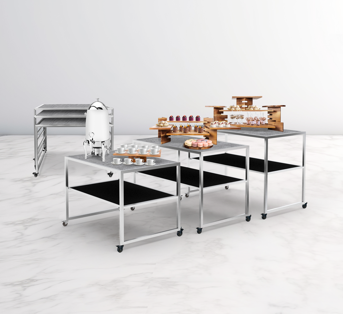 • Three-tier display — Includes 1 small, 1 medium, and 1 large table in graduated heights for dynamic buffet layouts