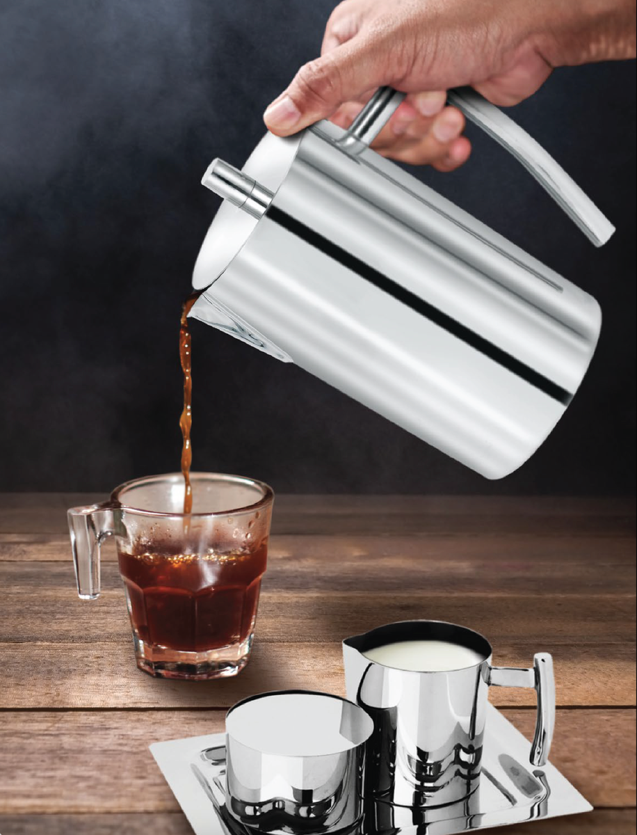 - 18/10 stainless steel coffee pot with hinged lid