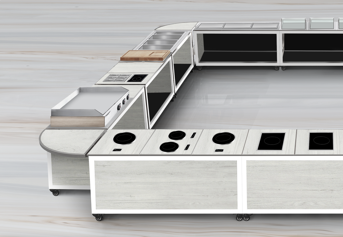 With endless configurations and options, the Hub Buffet becomes whatever you envision. Its modular components seamlessly change with your needs, so you can reinvent your buffet again and again — from action station to display table, cocktail bar, and beyond.