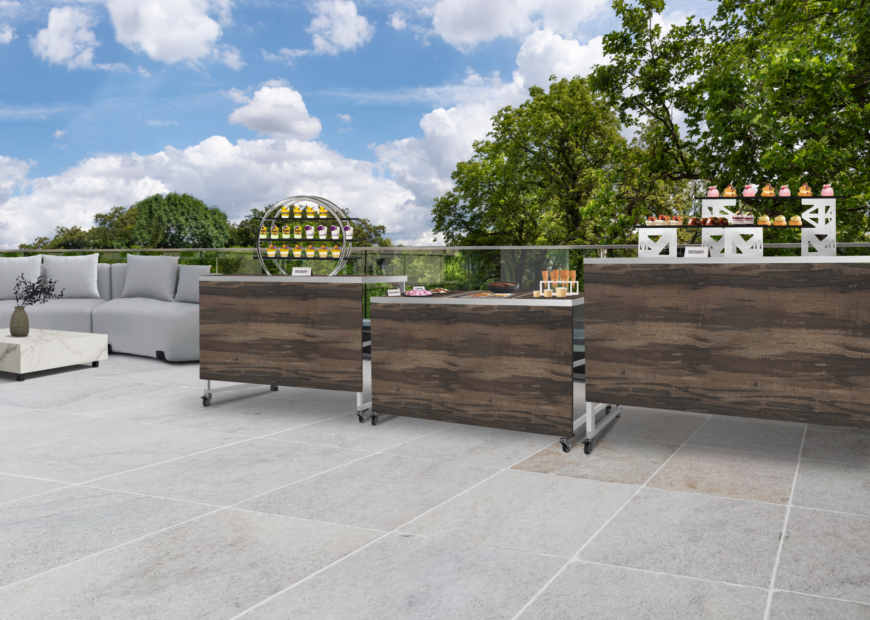 With endless configurations and options, the Hub Buffet becomes whatever you envision. Its modular components seamlessly change with your needs, so you can reinvent your buffet again and again — from action station to display table, cocktail bar, and beyond.