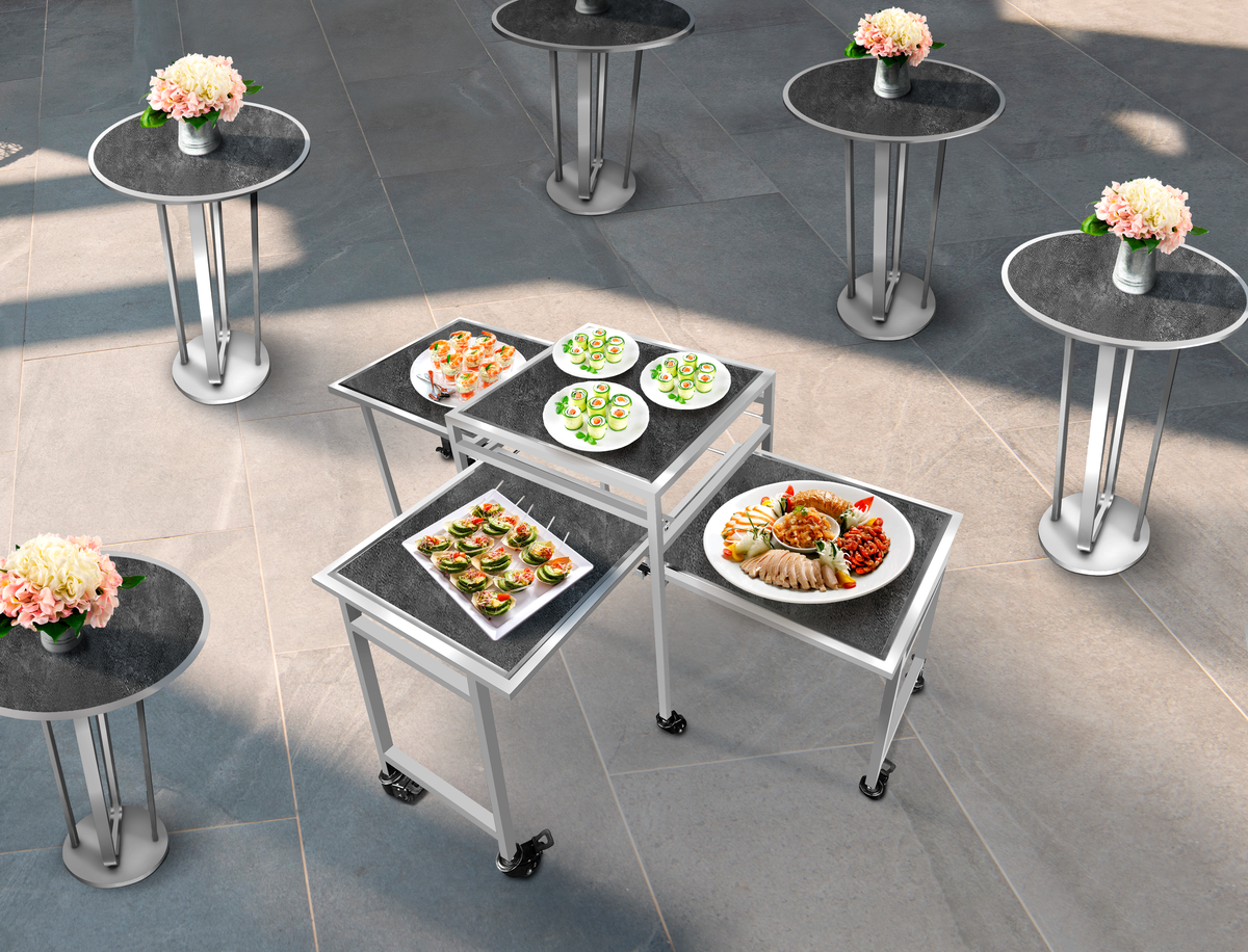 - Small base, tall presence — 36" or 41" height with 30" or 36" tabletop options