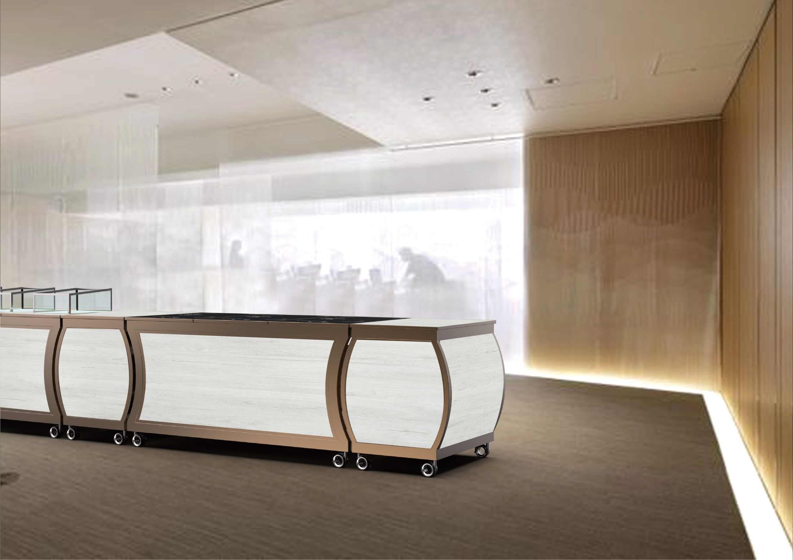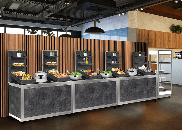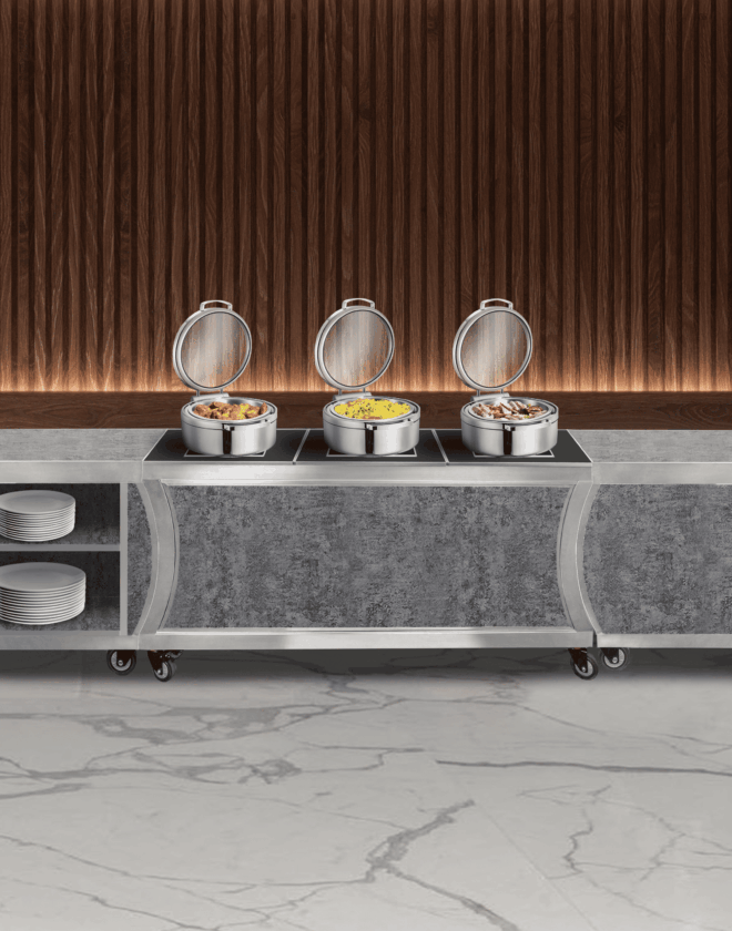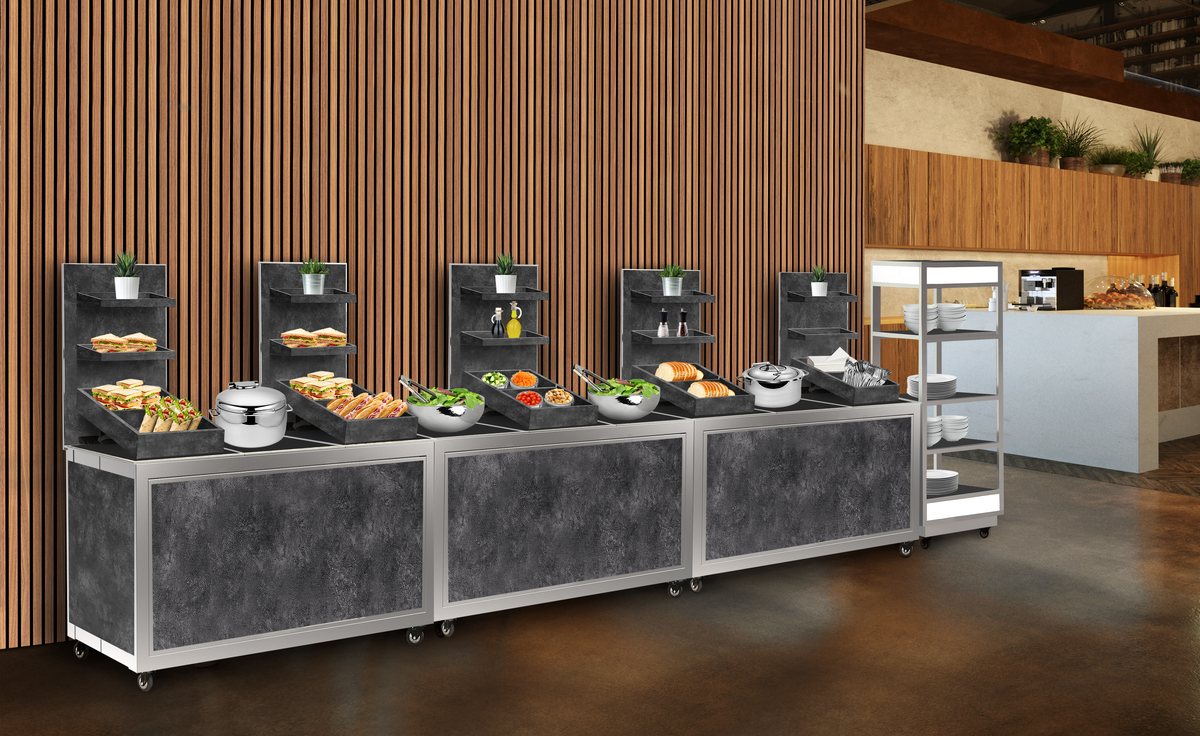 With endless configurations and options, the Hub Buffet becomes whatever you envision. Its modular components seamlessly change with your needs, so you can reinvent your buffet again and again — from action station to display table, cocktail bar, and beyond.