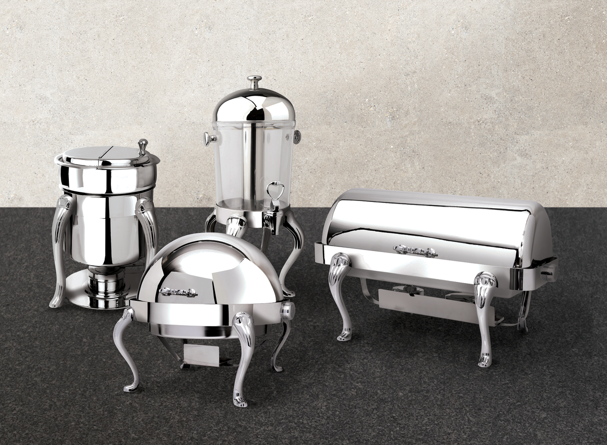 - Includes dual sterno holders for consistent heating