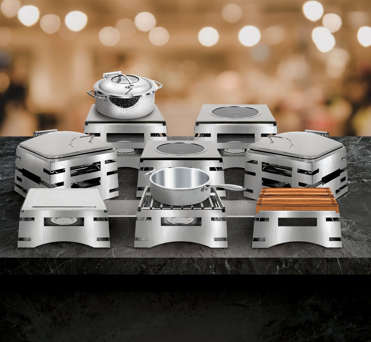 The Revo All-In-One Buffet System is built for control, creativity, and complete customization. With modular stands and interchangeable inserts, Revo lets you mix, match, and reimagine your buffet setup from the ground up. From chafers to grill tops, butcher blocks to induction, every element is designed to work together — creating a cohesive look that’s built to adapt.
