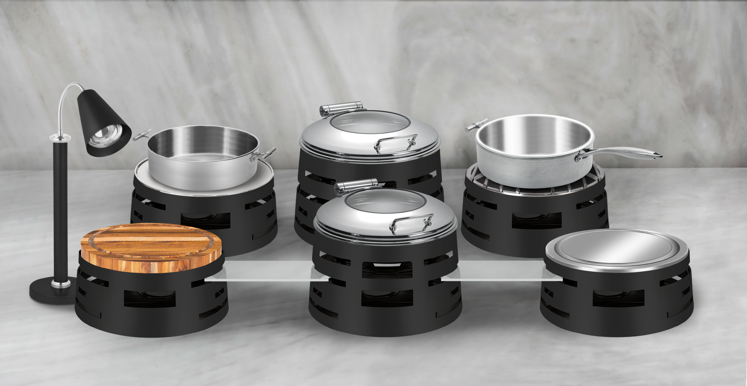 The Revo All-In-One Buffet System is built for control, creativity, and complete customization. With modular stands and interchangeable inserts, Revo lets you mix, match, and reimagine your buffet setup from the ground up. From chafers to grill tops, butcher blocks to induction, every element is designed to work together — creating a cohesive look that’s built to adapt.