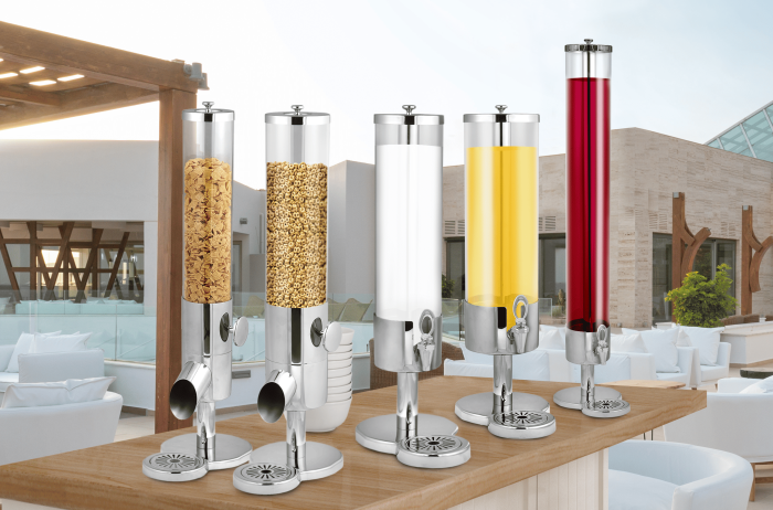 - Container size: 6" dia. x 18" H with turn-to-serve mechanism