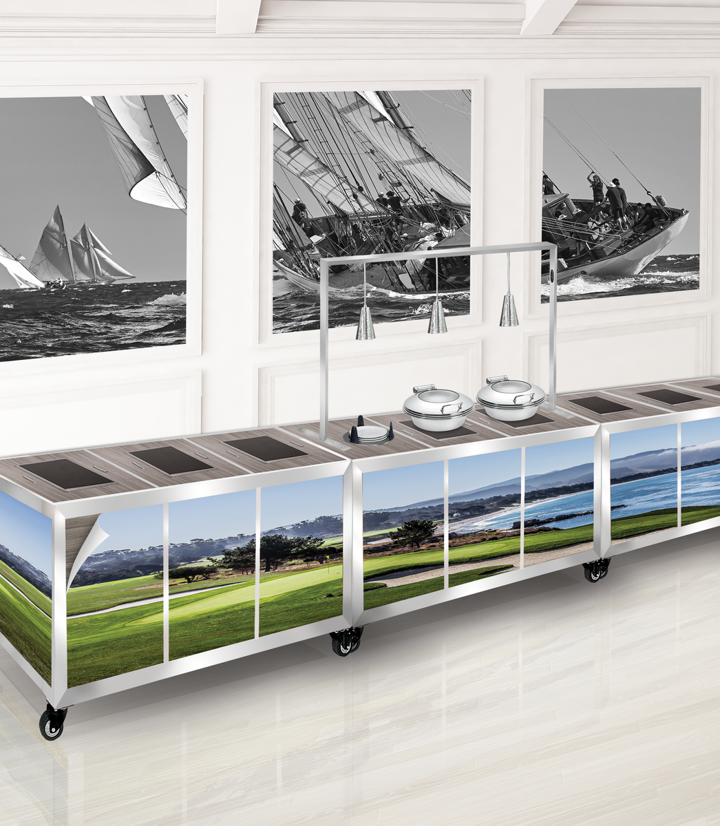 - Seamless fit — 66”W x 22”H dimensions perfectly cover the HUB Mobile Buffet System